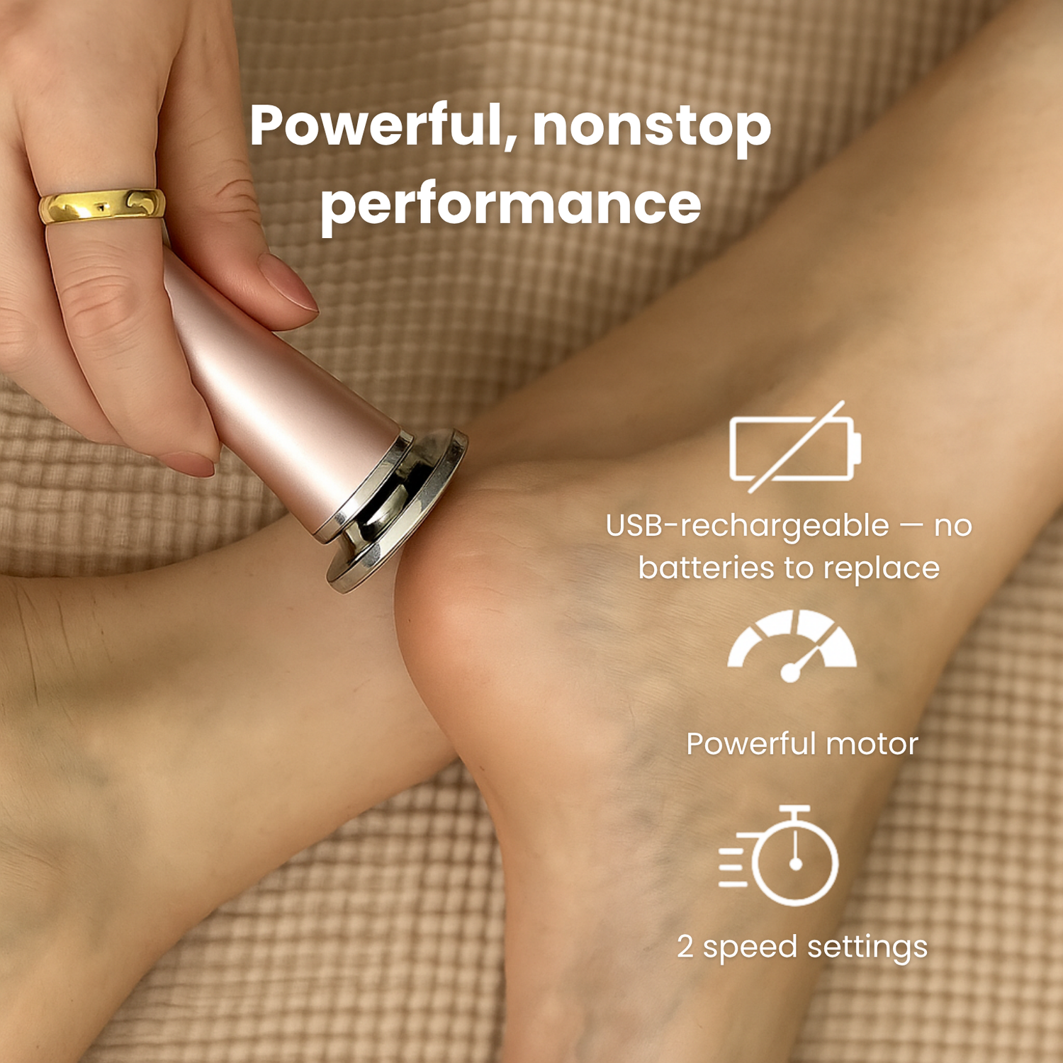 On clean, dry feet, choose your speed, glide over calluses 2–3 seconds per spot, then moisturize. Use 1–2× per week for maintenance (more frequently at first if heels are very dry).